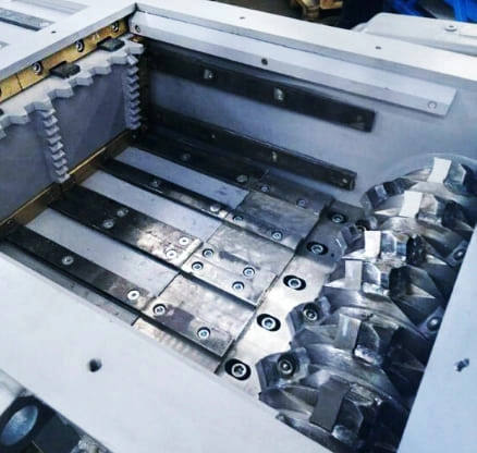 Стоит выделить разницу между одновальными шредерами и моделями с двумя валами. Однороторные машины имеют плиту, которая движется посредством работы гидравлического механизма. Плита-потресовщик необходима для дополнительного воздействия на материалы с целью их подачи на режущие элементы.