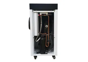 - • Экологичность эксплуатации гарантирует использование вместо фреона обыкновенной воды. Таким образом, при повреждении трубопровода с находящимся в нём теплоносителем опасности для окружающих возникнуть не может.