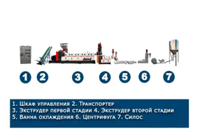 Для оптимизации работы могут использоваться различные виды оборудования, среди которых конвейер для непрерывной загрузки материалов, гидравлический фильтр для увеличения скорости переработки, пневмотранспортер и центрифуга для ускоренной выгрузки полимеров, компактор, позволяющий более качественно осуществлять процесс плавления и гомогенизации, а также экономить до 40% электроэнергии.